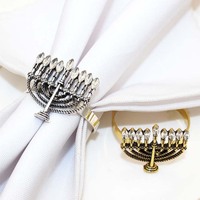 Zinklegering Hanukkah Menorah-Vormige Servethouder Negenkoppige Kandelaar-Vormige Servetring Winkel Hotel Joodse Vakantiebenodigdheden